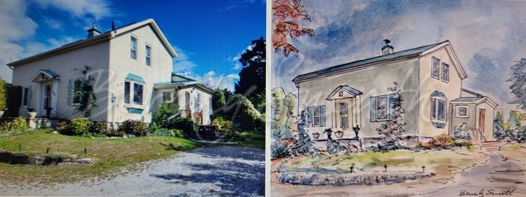 Commission Art – Homes & portraits. Turn your home into art with a custom drawing or painting. Choose from a simple pencil drawing, pen & ink , ink drawing with watercolour wash, or a more formal watercolour or acrylic painting. There are many possibilities and price ranges starting at $100 for an 8 x 10 drawing in pencil or ink with wash. Portraits from photos are also available sarting at $250 for 11 X 14 watercolour painting. Visit the portrait page for samples.