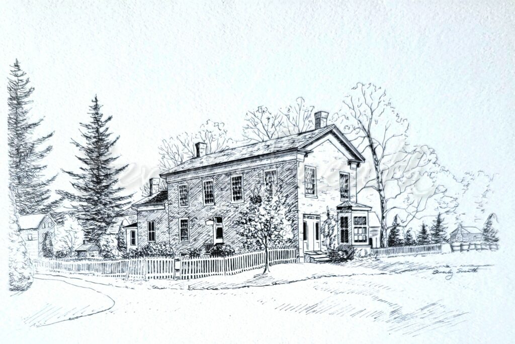 pen & ink drawing, Ball House, Ball's Falls, Homestead